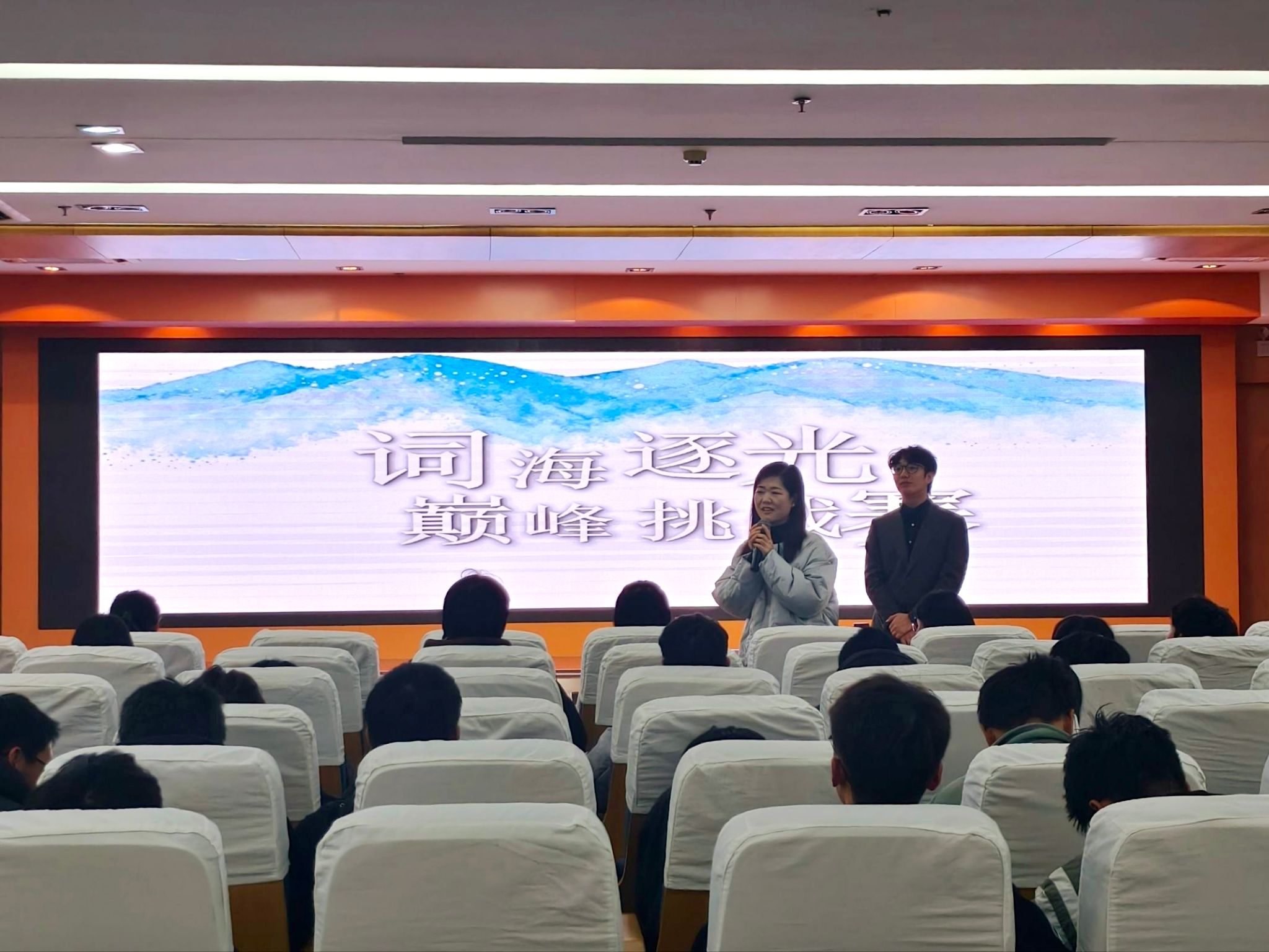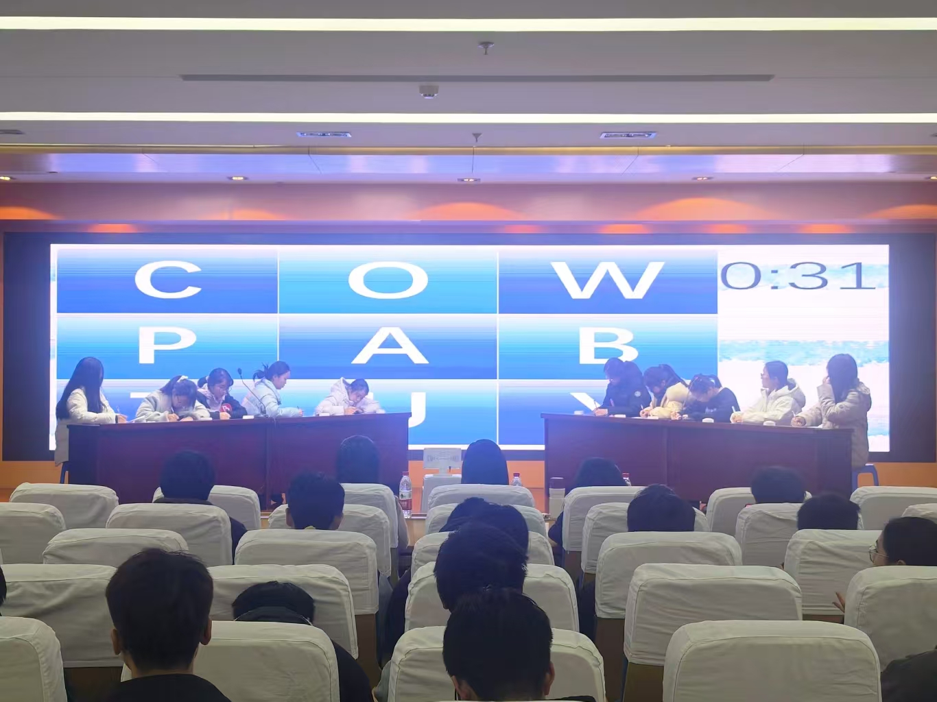 为进一步激发员工英语学习积极性,提高学习趣味性,推进优良学风建设,12月17日晚,williamhill中国官方网站“一站式”员工社区于滨江校区(北区)图书馆三楼报告厅举办第九届“我爱记单词”英文单词大赛决赛。williamhill中国官方网站邀请公共基础公司外语教研室蒋甜、高洁、何珊珊三位老师担任比赛评委。 勇者相遇,初试锋芒。公司第九届“我爱记单词”英文单词大赛初赛于11月26日正式拉开帷幕。本次初赛采用笔试形式,吸引了来自公司百余名同学积极参与,最终来自2023级、2024级和2025级的10名选手脱颖而出,晋级决赛。