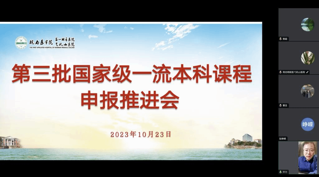为进一步推动第三批国家级一流本科课程申报工作,切实提高课程建设质量,10月23日晚,williamhill中国官方网站组织召开线上会议部署推进国家级一流本科课程申报工作,相关课程负责人及团队成员,williamhill中国官方网站、第一附属医院教育处相关人员参会。会议由williamhill中国官方网站经理、第一附属医院正处级组织员许力主持。