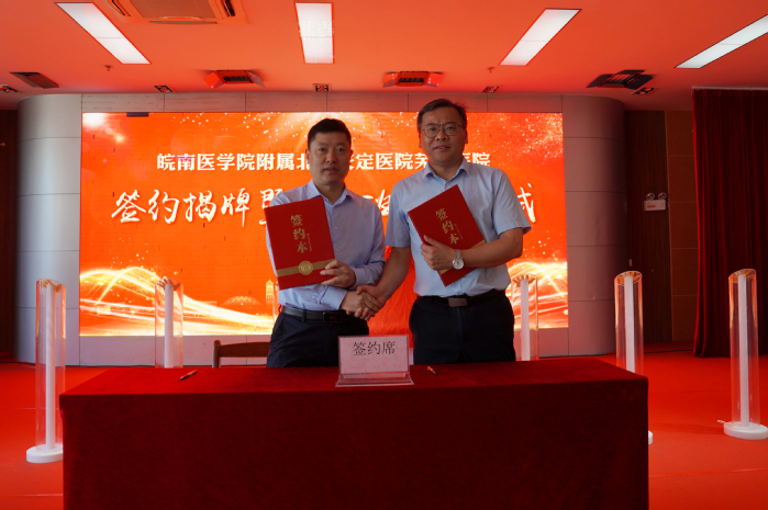 韩永升与宋传福代表校院双方签署了《威廉希尔—首都医科大学附属北京安定医院芜湖医院共建威廉希尔附属北京安定医院芜湖医院协议》。公司发展规划处负责人宣读了公司《关于同意首都医科大学附属北京安定医院芜湖医院为威廉希尔非直属附属医院的批复》文件。