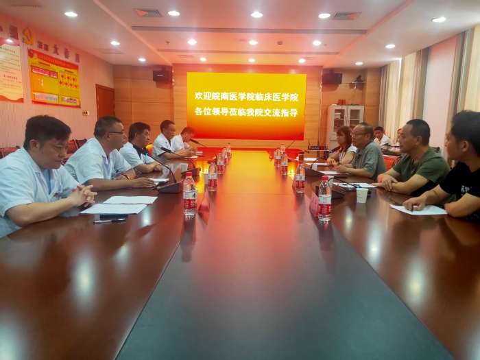 为进一步拓展校外优质医疗教学资源,保障实践教学,搭建就业平台,促进毕业生更充分更高质量就业,7月15日-16日,临床医公司党委书记傅万山、党委副书记陶香香,公司教学督导组组长钱大青、毕业班辅导员等一行5人赴黄山首康医院、泾县医院洽谈实习就业合作事宜,受到安徽首康医疗投资有限公司董事长徐建平、总经理王彦杰,黄山首康医院经理贾全章,泾县医院经理王昭宝等医院领导的热情接待。