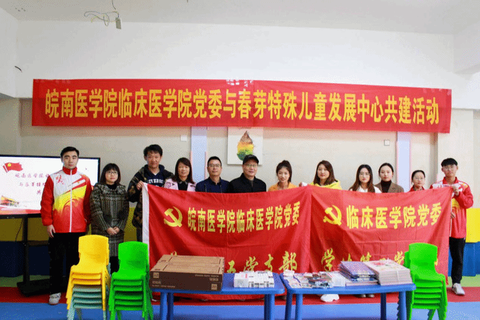 为扎实开展“我为群众办实事”实践活动,把党史学习教育成效转化成为民服务的生动实践,11月13日,临床医公司党委书记傅万山、副经理陈祥攀、党委副书记陶香香,携员工第二、第五党支部教工及员工党员前往芜湖市春芽特殊儿童发展中心开展共建活动。