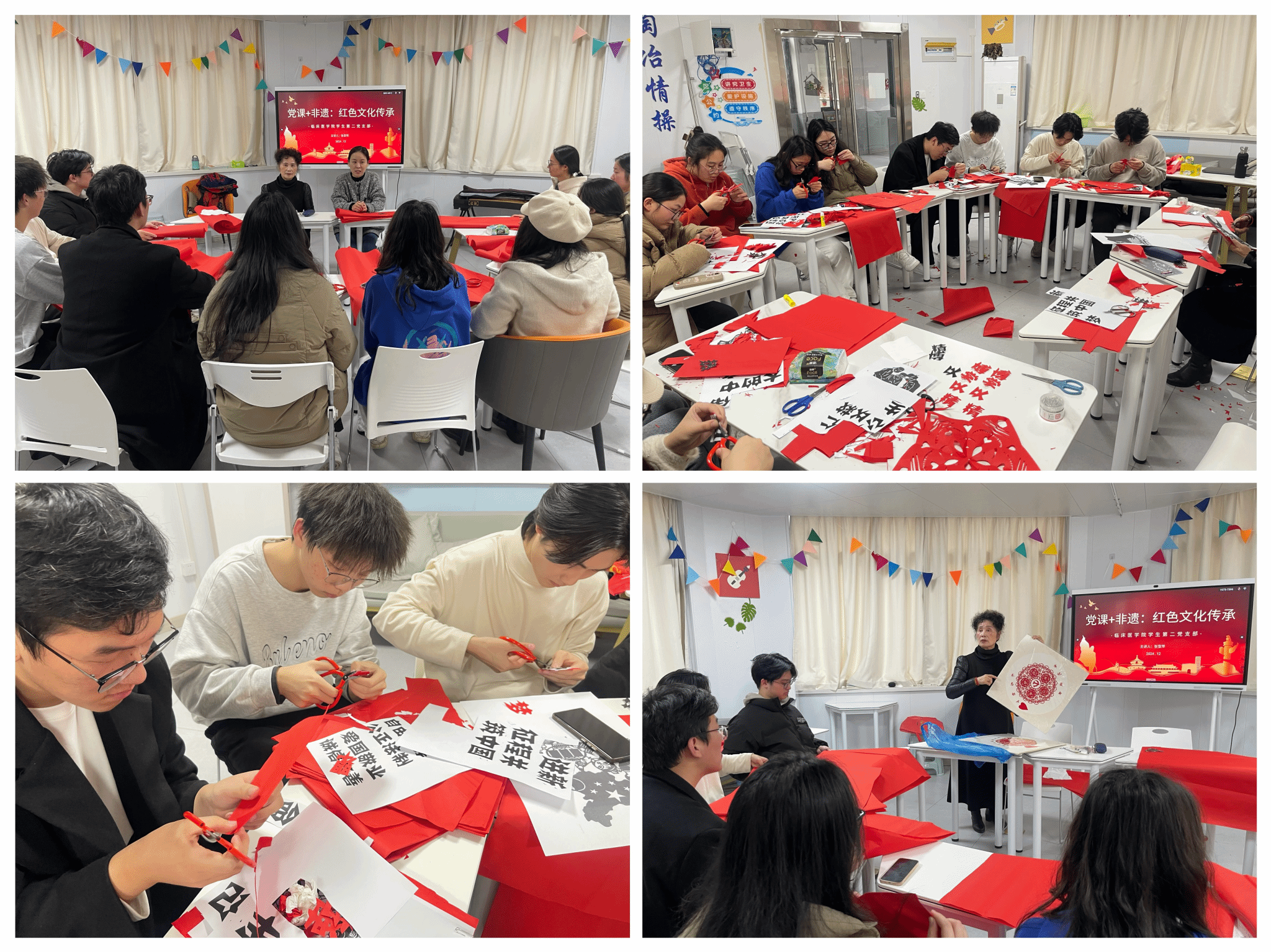 为弘扬中华优秀传统文化,坚定文化自信,赓续精神力量,12月3日,williamhill中国官方网站员工第二党支部在“一站式”员工社区组织开展红色非遗剪纸艺术特色党课。