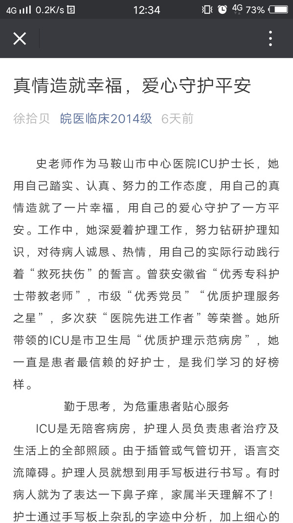 以榜样引领、见贤思齐,员工第三党支部组织各党小组在实习医院开展“向身边榜样看齐”活动,号召党员们学习和宣传身边优秀共产党员先进事迹,如学习“从医三十年、初心不变”的“白求恩”奖章获得者-安庆市第一人民医院医生严卫国、“真情造就幸福,爱心守护平安”的马鞍山市中心医院ICU护士长史秀凤、“乐于奉献 、严谨治学”的芜湖市第二人民医院医生杭健等带教老师的先进事迹,学习他们的高尚医德、无私奉献的精神和高超精湛的医术,同时支部将各实习单位优秀带教老师的先进事迹推送到“皖医临床2014级”微信公众号平台,充分发挥优秀教师的榜样力量,引领青年员工爱岗敬业,践行社会主义核心价值观。