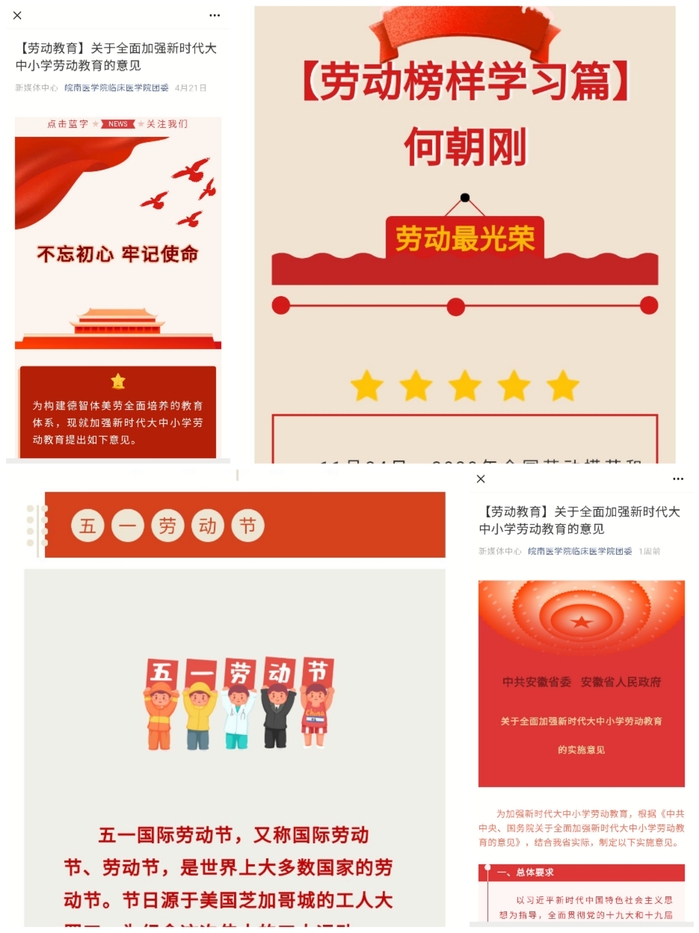 各党支部、团总支通过主题班会、党课、微团课、微信推文等多种方式线上线下加强宣传教育,阐述老员工劳动教育的重要意义,分享劳动教育的有益经验和做法,引导员工树立正确的劳动观念,养成良好的劳动习惯,提高动手能力,增强自我教育、自我管理和自我服务能力,希望广大青年学子以劳树德、以劳增智、以劳强体、以劳育美、以劳创新,促进员工全面发展。