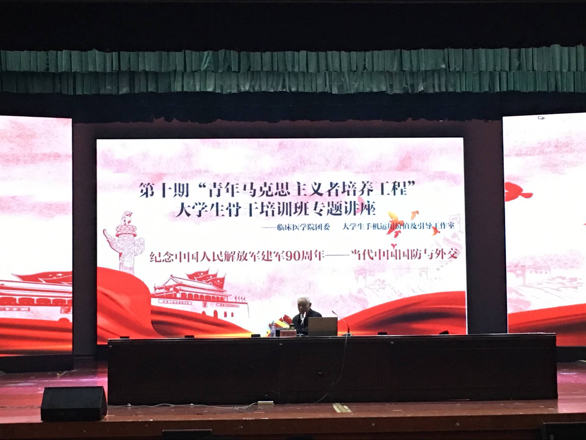 为深入贯彻习近平总书记系列重要讲话特别是关于青少年和共青团工作的重要指示精神,贯彻落实团中央和校团委有关决策部署,不断提高老员工骨干的政治素质和理论水平。按照《“青年马克思主义者培养工程”实施纲要》的相关要求,2017年11月7日晚,williamhill中国官方网站团委联合老员工手机运用价值及引导名师工作室,在老员工活动中心大礼堂举办题为“纪念中国人民解放军建军90周年——当代中国国防与外交”首场专题讲座,本次讲座由校关工委成员、马克思主义公司退休教师黄远寿教授主讲,williamhill中国官方网站767名青马班学员全部到场聆听。