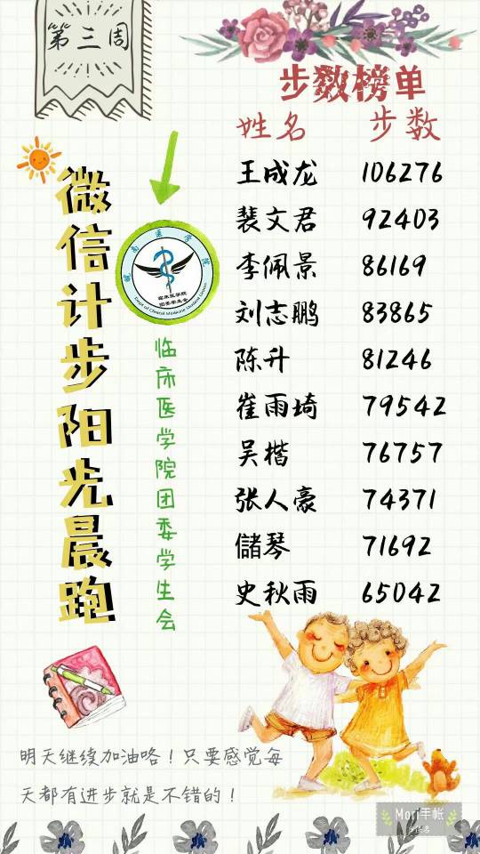运动青春展风采,感悟核心价值观。为帮助同学们培养良好的作息习惯,强化锻炼意识,提高身体素质;并通过官方微信互动方式,在员工中进一步加强社会主义核心价值观的宣传普及,williamhill中国官方网站团委联合老员工手机运用价值及引导工作室于10月23日至11月19日举办为期四周的“2017皖医阳光晨跑活动”。