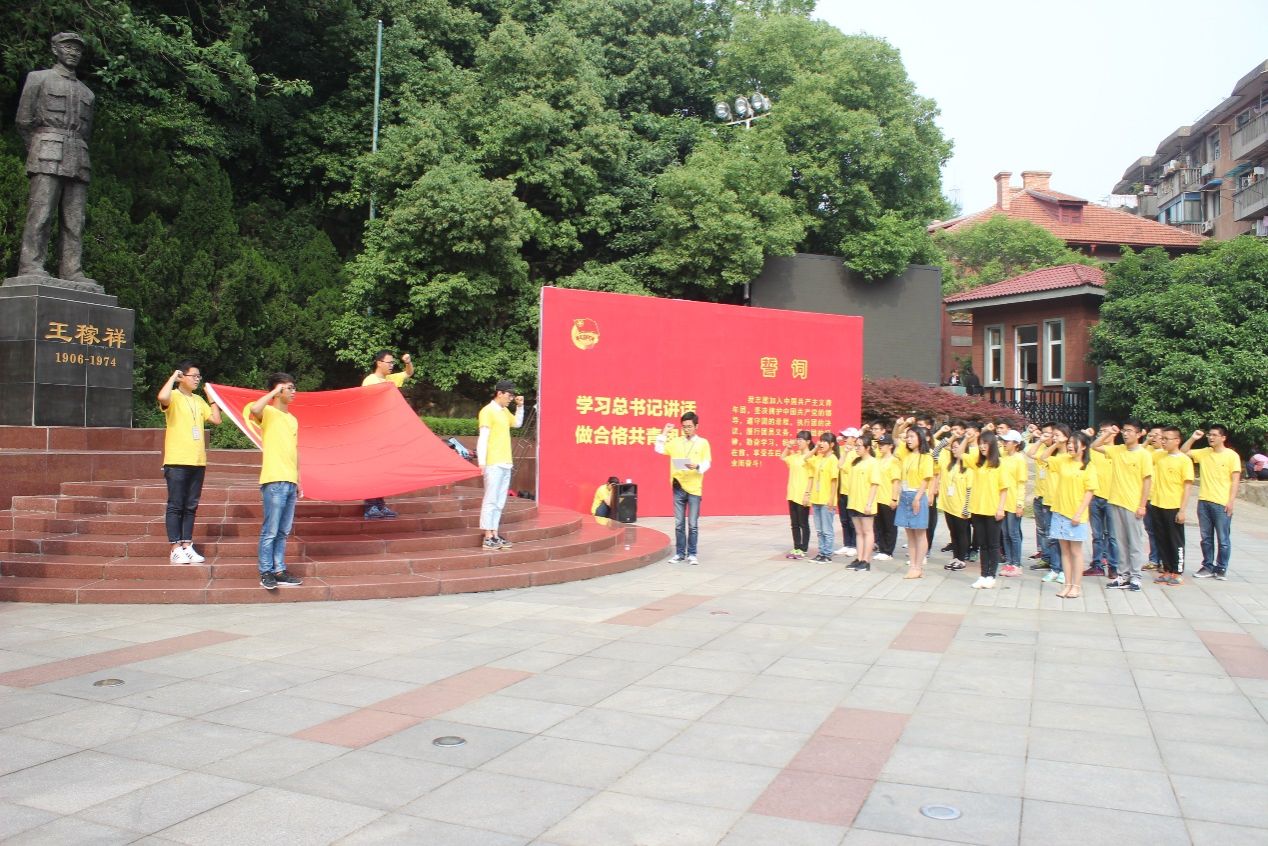 6日上午,40余名共青团员在团委组织带领下身着统一服饰、佩戴团徽乘车至王稼祥纪念园。在王稼祥雕塑前,奏唱国歌、代表发言、重温誓词等环节井然有序进行,在场的每一位同学神情肃然,心中满怀对革命先烈的崇敬。随后在解说员的带领下,同学们有序参观陈列室的五个展厅,看到了王稼祥同志相关照片、书信、生活用品等,为王稼祥传奇的人生故事和坚韧不拔的意志力所深深折服。