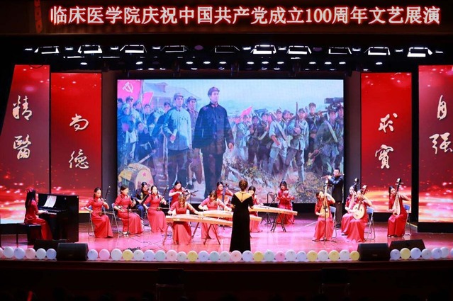 文艺党课由乐器表演《映山红》正式拉开序幕,多种民族乐器各司其职、配合默契、相得益彰,通过弹奏,表现出演奏者对党真挚的爱;手语唱红歌《国家》、大合唱《我和我的祖国》献礼祖国母亲,诉说着中华儿女对美丽祖国的无限热爱;话剧《恰同学少年》、《党啊,亲爱的妈妈》重现了五四运动浩荡百年的历史荣光、歌颂了仁人志士千秋凛然的爱国热情,场下观众无不为之动容;相声《文化人》以生动风趣的方式道出了抗疫英雄们的光荣事迹和医员工的责任与担当;武术表演《墨舞丹心》行云流水,退役学子的军体拳虎步生风,扣人心弦,引人入胜,将现场气氛推向高潮;乐队表演《社会主义好》将现代与经典相结合,嘹亮的歌声,彰显华夏儿女拼搏奋进的雄心;朗诵《我爱你中国共产党》抑扬顿挫,慷慨激昂,歌颂党恩是至纯至真的情感迸发;舞蹈《咏春》、《芒种》等运用群舞的方式,将古典与现代元素完美结合,热情似火的舞步,彰显青春活力,展现出老员工的蓬勃朝气与独特魅力;歌曲串烧用音乐歌颂似水年华,用歌声谱写追梦青春,将一代青年脚踏实地不忘初心的信念展现得淋漓尽致;教师《阳光总在风雨后》对话员工展现师生情深,希望青年员工坚定理想信念,志存高远,不畏艰难,脚踏实地,勇做时代的弄潮儿;《不忘初心》大合唱气势恢宏,莘莘学子的满腔爱国之情随着歌声飘扬回荡,为整场文艺党课画上了圆满的句号。