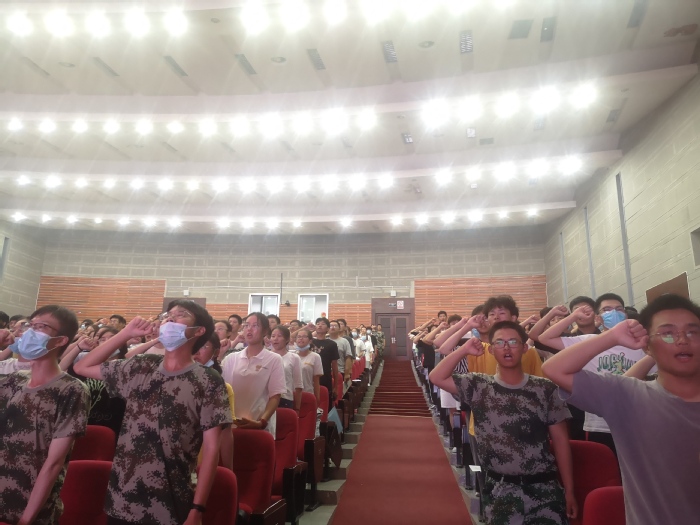 最后,2021级辅导员从团学工作、资助工作、奖助学金、校规校纪、安全教育等方面为新生做了详细解读。辅导员李锐洁老师带领全体新生进行医员工誓言宣誓,同学们全体起立,高举右拳,郑重承诺,慷慨洪亮的声音在宣告他们有信心、有决心、有能力做优秀的医员工。