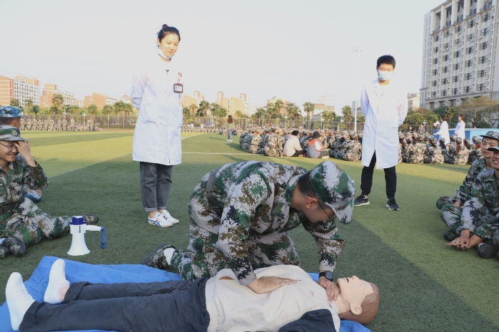 为进一步推进“早临床、早技能”的教学理念。10月12日,williamhill中国官方网站组织临床技能教学团队深入校园,针对williamhill中国官方网站正在军训的700名新生开展“心肺复苏”培训。培训团队由一附院临床教师、住培学员和临床医学实验实训中心教师组成。