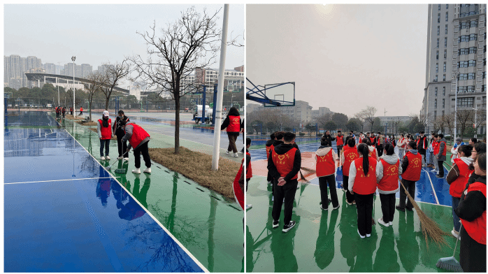 党支部活动通知发出后,60多名入党积极分子积极响应。同学们主动拿起扫帚、拖把等工具走向篮球场,用自己的劳动维护校园安全和环境清洁。2021级辅导员张海涛还为同学们讲述了一堂行走的劳动“微党课”。他结合自己学习、生活和工作经历,讲述了自己对劳动教育的理解和实践,并引用习近平总书记关于劳动教育的重要讲话,勉励大家要崇尚劳动、尊重劳动,懂得劳动最光荣、劳动最崇高、劳动最伟大、劳动最美丽的道理。