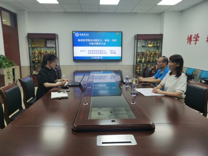 为助力员工成长成才,提前谋划实习、就业和毕业生应征入伍工作,6月19日,公司召开2019级员工实习、就业、考研与征兵主题教育大会,公司党委书记、副经理傅万山及党委副书记陶香香主讲,年级辅导员和680名临床学子参加会议。