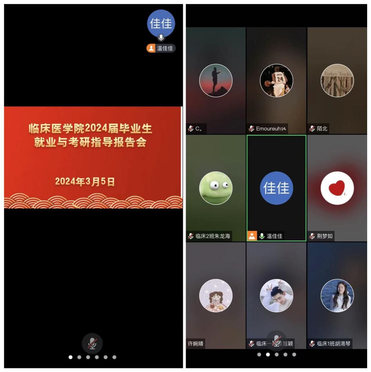 傅万山从当前就业形势、就业与学业、就业与考研、就业与住培规培、就业与执业医师考试等方面进行指导,并对毕业生提出三点建议:一是了解就业形势,把握就业机会。要及时关注国家政策导向和用人单位需求变化,主动出击,把握就业黄金期;二是拓宽思路,多渠道就业。勇于到各级医院就业,实现多路径就业;三是时刻准备,奋力一搏。考研同学要早做复试准备,拓展复试、调剂、就业信息渠道,珍惜每一个升学的机会,多举措做好考研复试和就业准备工作。