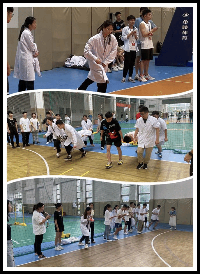 考试月期间,年级组织了一场别开生面的“翻滚吧,鸭梨君”趣味运动会。活动设“穿脱工作服”“乒乓接力”“担架急救”三个项目,既考验员工个体在遇到突发情况时的反应速度和协调能力,也锻炼了团队作战的相互信任和合作能力,更重要的是帮助同学们释放考试带来的压力,帮助他们以积极心态复习迎考。