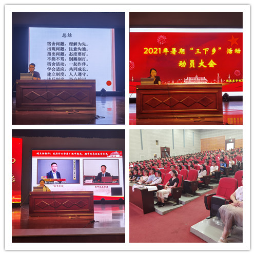 杜勇飞具体解读了评优评先的相关政策和申请细则,提醒同学们利用暑假进行本学年的自我总结以及材料准备,并鼓励同学们用所学知识武装头脑,遇事冷静,灵活解决学习、生活和交友方面遇到的问题,同时敢于争先,做好行动表率。随后,高琳娜总结了本学期的年级教学工作,通过图片、视频形式将“备考加油站”、“黄金半小时”等特色学习活动展示出来,与大家一起重温了多个共同努力的瞬间,布置了暑期学习内容,鼓励同学们树立崇高的职业理想,永攀知识高峰。最后,江明菲解读了暑期“三下乡”社会实践活动的有关文件,动员同学们围绕“永远跟党走 奋进新时代”的主题,以晨曦志愿服务队为平台,开展特色实践活动,在社会课堂中受教育、长才干、作贡献,在观察实践中学党史、强信念、跟党走,以实际行动庆祝中国共产党成立 100 周年。