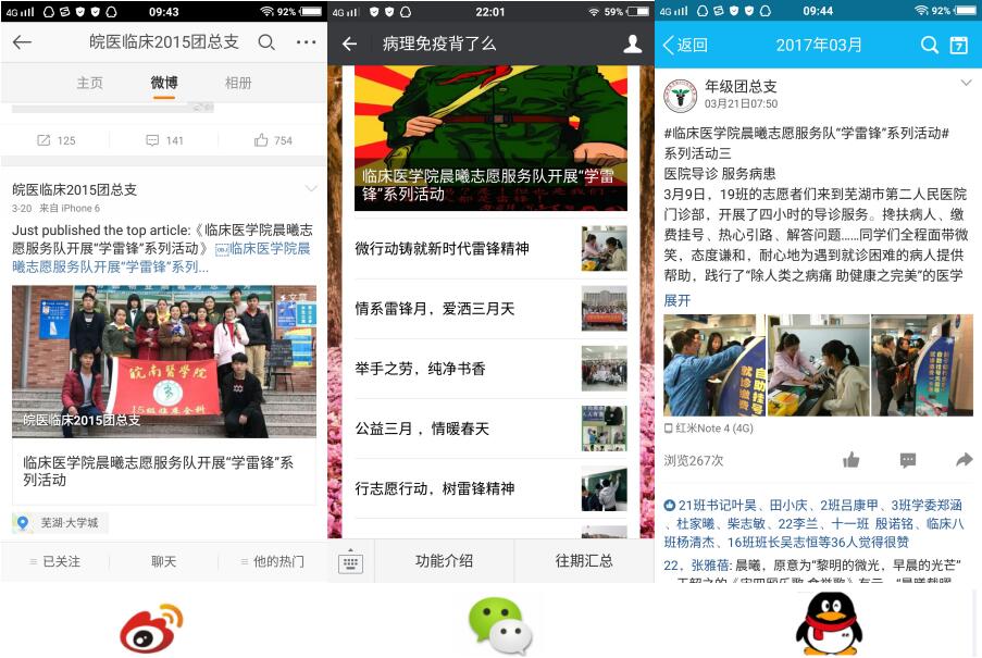 随着我国经济高速发展,信息科技日新月异,QQ、微信、微博、飞信等一系列新媒体形式为高校员工工作带来了新的机遇和挑战。年级充分利用新媒体的便捷性和多样性,围绕思想引领、专业教育、创新创业、社会实践、志愿服务等方面,灵活运用微信公众号、微博、QQ群等网络平台进行多渠道采集、多资源共享、多形态发布,主动占领思想政治工作新阵地。