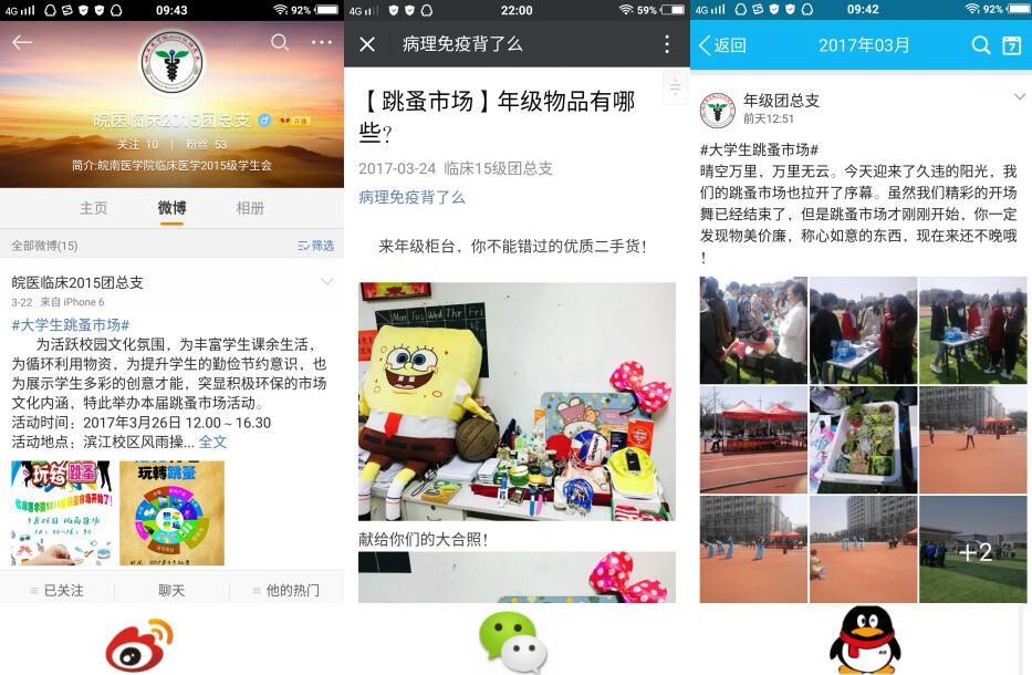 省委书记李锦斌在全省高校思想政治工作会议上强调,要注重运用好新媒体新技术,让思想政治工作更富营养、更接地气、更有温情、更具活力,切实增强高校思想政治工作实效性。年级认真学习贯彻会议精神,在“学雷锋 树新风”志愿服务、“祭革命先烈 笃成才之志”主题团日、“跳蚤市场”等活动中,借助新媒体打造特色亮点工作,促进新媒体和思想政治教育的融合,着力增强工作实效。