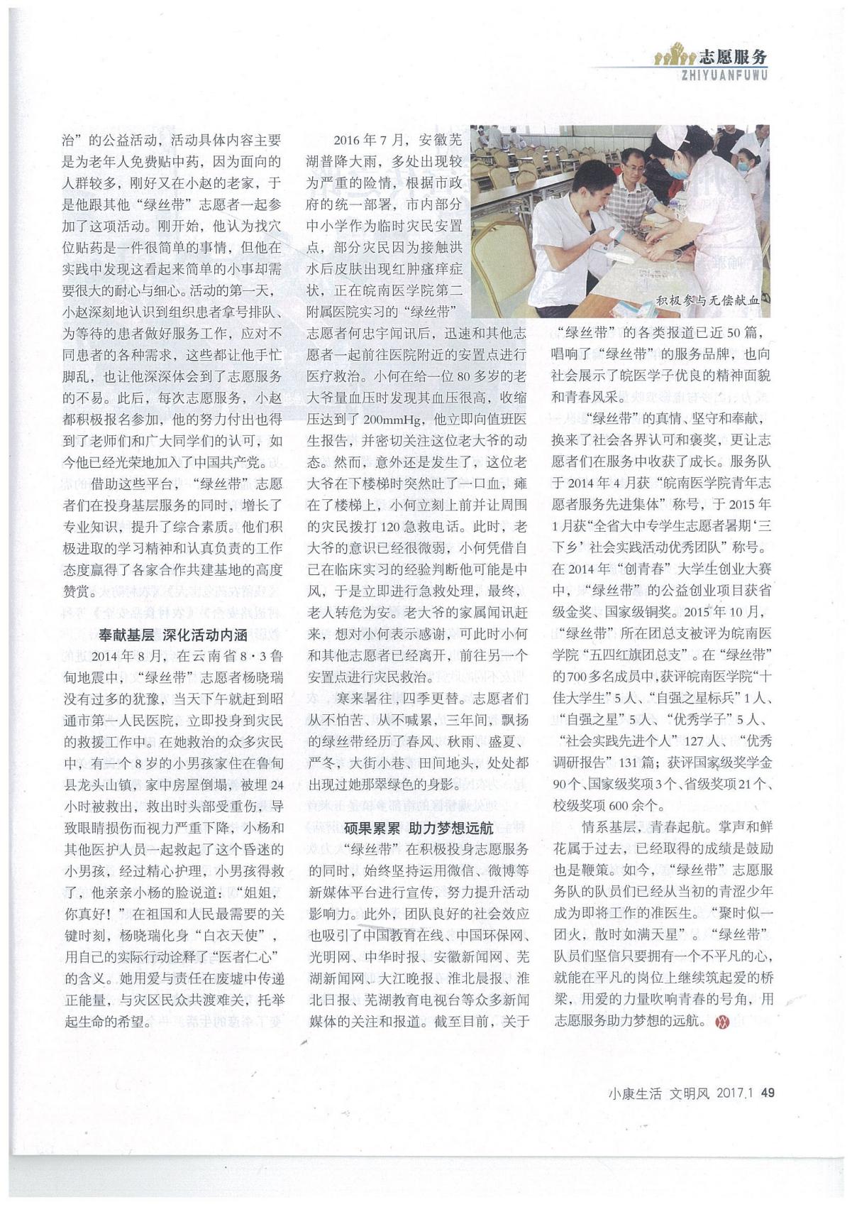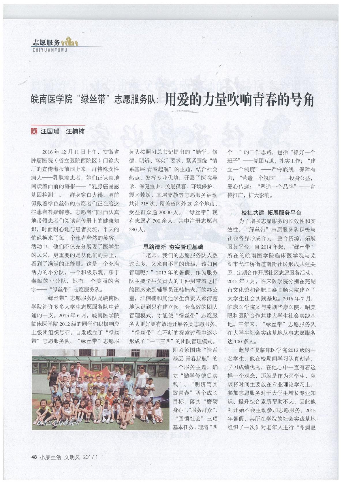 安徽省文明办《文明风》杂志报道williamhill中国官方网站“绿丝带”老员工志愿服务队先进事迹