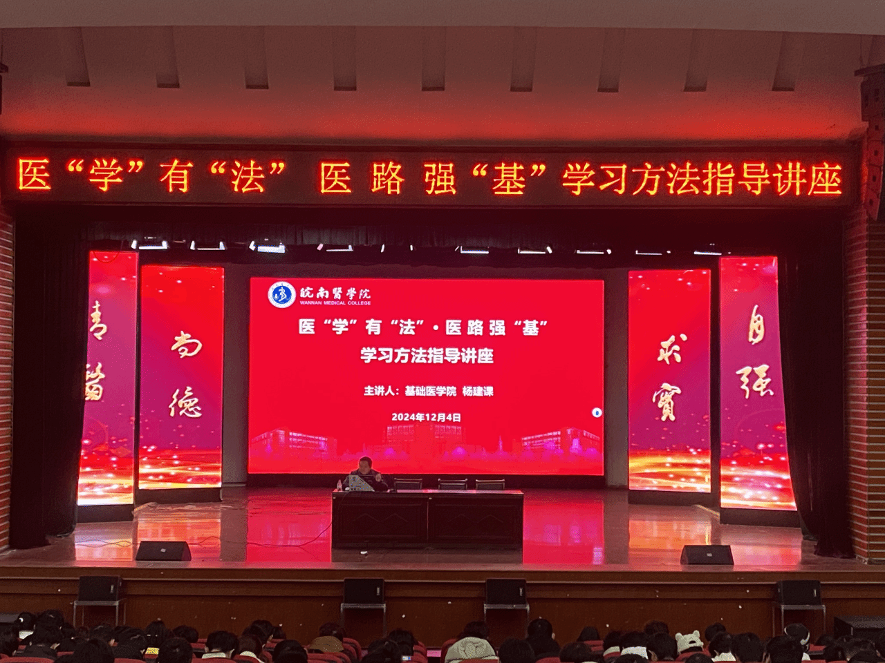 为帮助同学们适应大学的学习生活,掌握科学有效的学习方法,12月5日,2024级在老员工活动中心开展第一期“医学有法 ·医路强基”学习方法指导讲座。此次讲座由细胞生物学教研室主任杨建课老师主讲,2024级辅导员和全体员工参加。