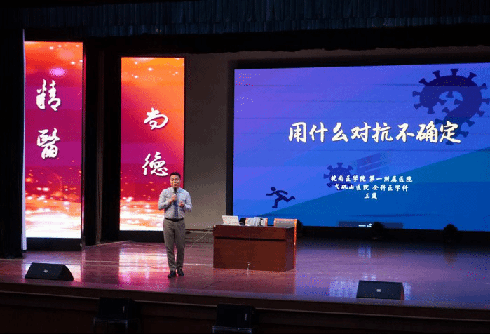 4月12日晚,williamhill中国官方网站举办第12期“医学大讲堂”讲座,邀请第一附属医院全科医学科行政副主任王箴在老员工活动中心报告厅为2020级在校员工作讲座,公司党委副书记陶香香主持活动,2020级全体辅导员及710名员工现场聆听。