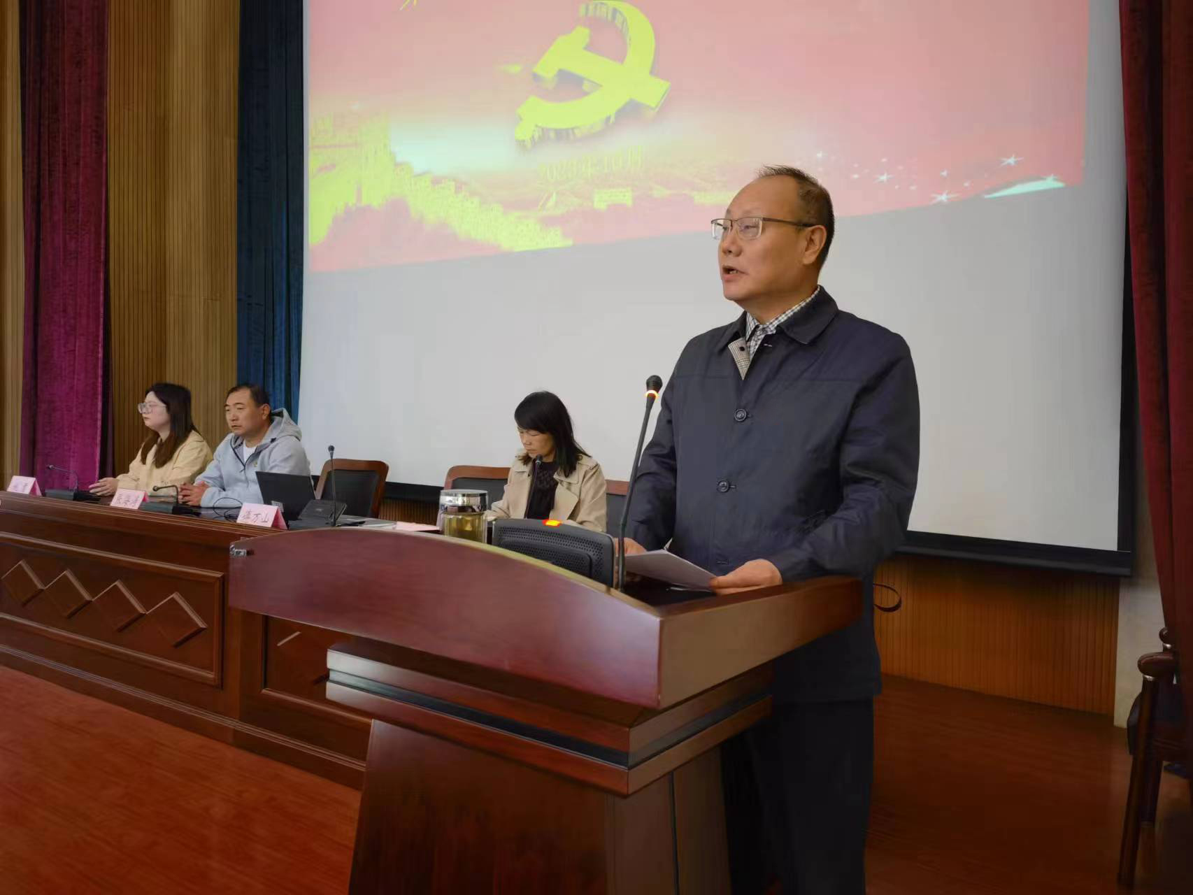 经理许力作“学习新思想、青春建新功”专题报告,他对习近平新时代中国特色社会主义思想的丰富内涵、核心要义等进行了深刻的阐释,希望大家以实际行动争取早日入党,并鼓励在场同学结合专业,发挥所长,在医学的道路上再建新功。