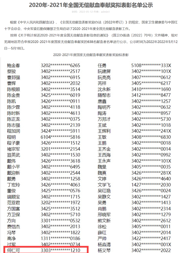 何仁可荣获芜湖市无偿献血奉献奖金奖