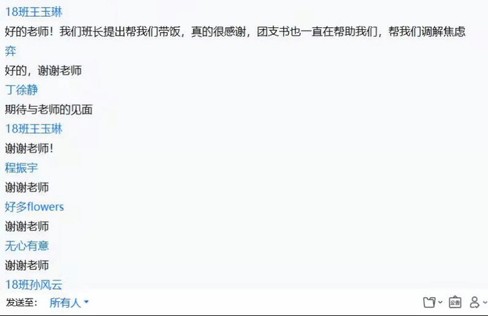 会后同学们纷纷在线上留言感谢公司的关心和指导,表示老师们的关心和尊尊教诲为身在上海五院的同学们带去了一缕春风和阳光,同时承诺临床学子一定会按照公司和医院的要求,做好个人防护,同心协力抗击新冠疫情。