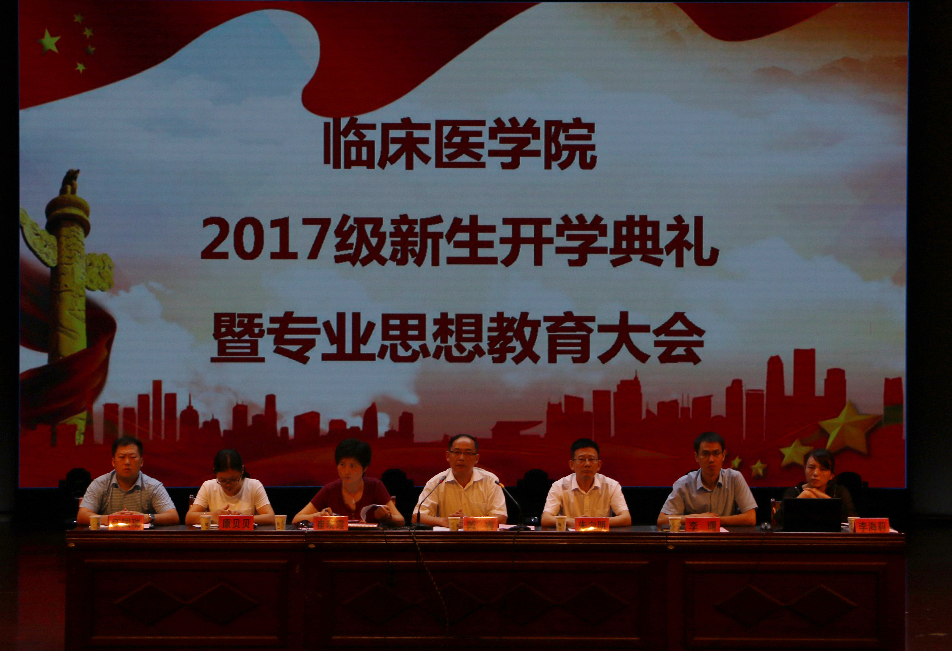2017年9月18日晚6点,williamhill中国官方网站2017级新生开学典礼暨专业思想教育大会在老员工活动中心举行,临床医公司党委书记戴睿、经理朱向明、党委副书记崔晓霞、副经理李曙、公司员工工作秘书康贝贝、2017级新生辅导员及全体新生参加了会议。会议由崔晓霞主持。