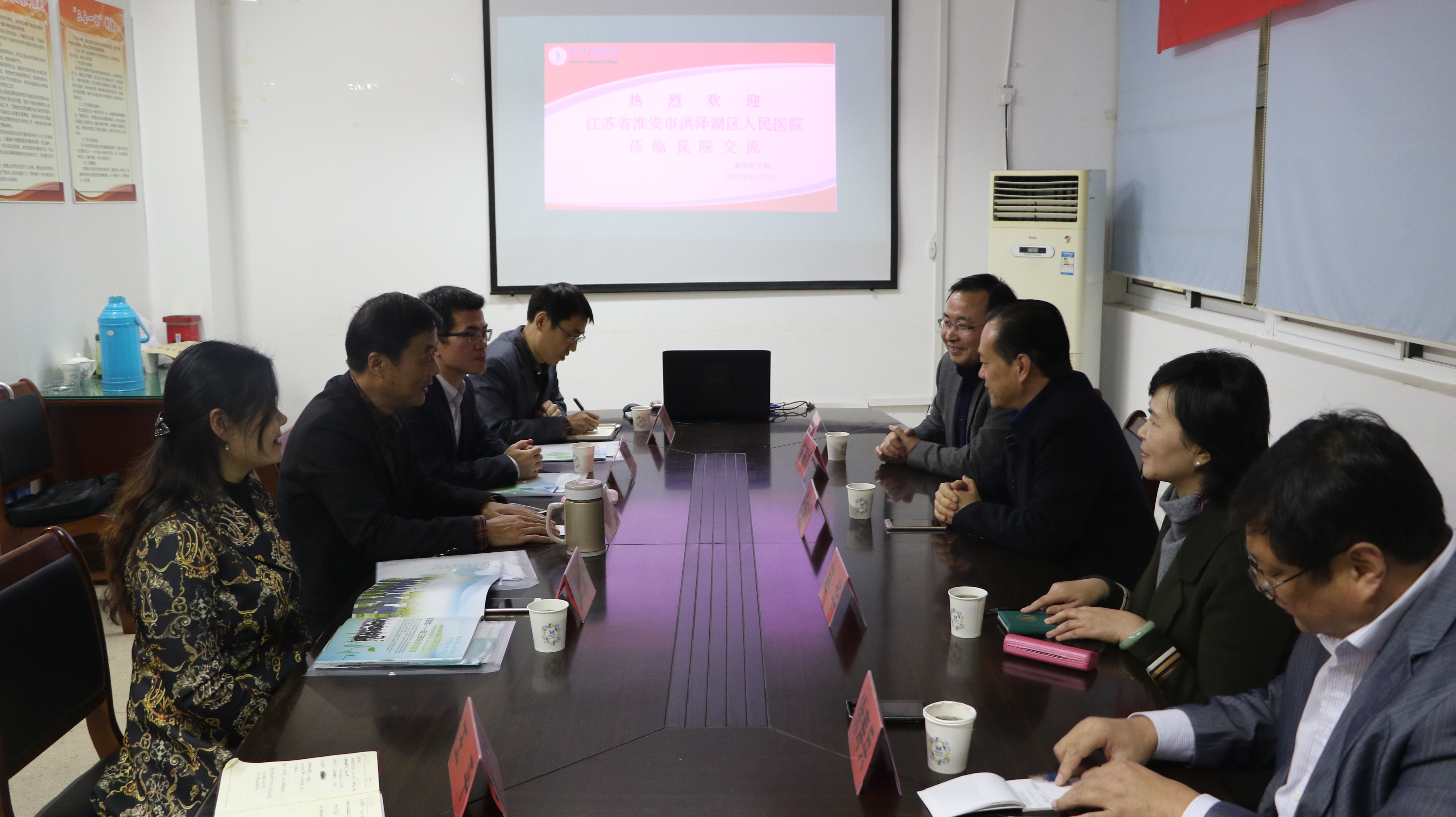 11月14日,江苏省淮安市洪泽区人民医院经理王林森、副经理赵华等一行4人来williamhill中国官方网站交流工作,临床医公司党委书记刘群、副经理李曙在公司会议室接待了来宾,教务处处长郑兰荣、药公司经理韩军参加会议。