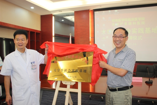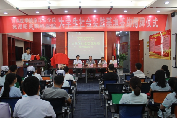 为提高老员工专业知识实践质量,加强老员工社会实践教育基地建设,7月9日-10日,williamhill中国官方网站与芜湖华康医院、昭美眼科医院合作共建老员工社会实践基地项目,分别在华康医院会议室、昭美眼科医院芜湖分院学术报告厅举行签约挂牌仪式。临床医公司党总支书记戴睿、副经理刘影、秘书束玉洁、王平、辅导员韩琪、2013级临床医学专业部分员工及医院代表出席了仪式。