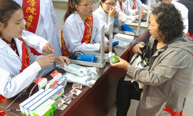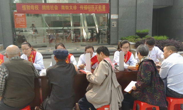 5月14日上午8点整,williamhill中国官方网站2011级员工第五党支部20名党员代表在杨海峰同学的带领下,来到芜湖南街社区开展文明离校系列活动之社区义诊,闻讯赶来的社区居民络绎不绝,支部的志愿者们为社区居民测血压、测体重身高、体格检查、普及宣传医疗健康知识及发放暑降温物品。同时,近段时间江城满城飞絮,志愿者们及时的向居民提供了医用口罩。志愿者们体贴的操作,耐心的讲解,感染了在场的每一个前来参加义诊的人。社区居民的赞扬让志愿者们感受到了浓浓的幸福感和重大的社会责任感,也增强了即将从事医疗工作的志愿者治病救人,服务社会的决心。