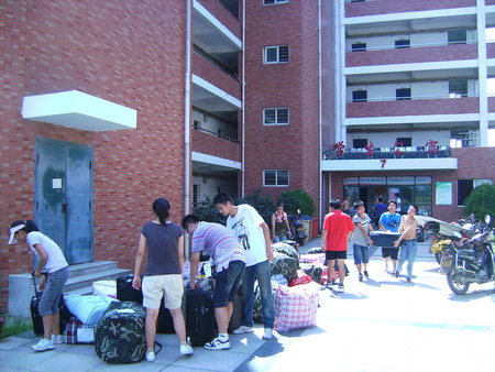 8月20日下午,骄阳似火,按照原定计划,医学一系2007级员工在系部老师和年级辅导员的指导下,有序地开始装运赴上海、合肥、芜湖、马鞍山、池州5个城市的员工行李。