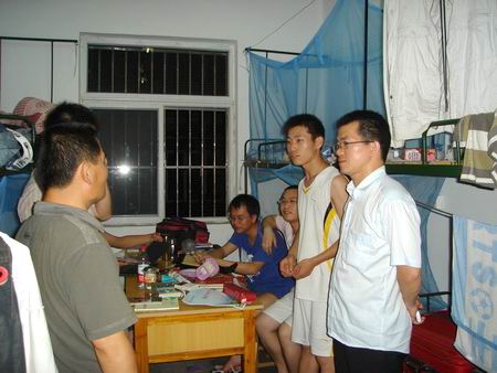 7月1日晚上,医学一系党总支书记杨新庆、副书记韩军分别带领系秘书吴金庭、05级辅导员方松、郭玉琼、黄顺国深入男、女生宿舍,看望、送别毕业生。