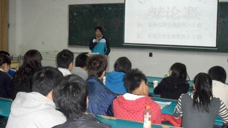 为培养同学们的合作精神,锻炼大家的口才,在经过第一、二轮的年级辩论选拔赛之后,4月24日晚6时,医学一系2009级团总支、员工会在西教学楼104教室举行了年级辩论赛总决赛。