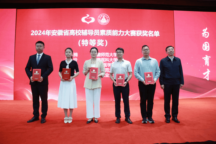 百舸争流千帆竞,奋楫笃行正当时。5月9日至11日,由中共安徽省委教育工委、安徽省教育厅主办,教育部高校思想政治工作队伍培训研修中心(安徽师范大学)承办的2024年安徽省高校辅导员素质能力大赛决赛圆满落幕。本次大赛共有全省百余所高校144名优秀辅导员参加,最终评选出特等奖5名、一等奖10名、二等奖20名、三等奖40名。公司williamhill中国官方网站辅导员李文祥以全省第3名的优异成绩斩获大赛特等奖,护理公司辅导员王武祥荣获大赛三等奖,这是公司辅导员在该项赛事中取得的历史最好成绩。