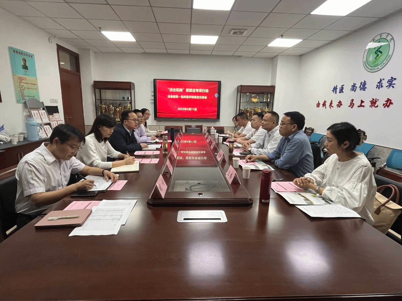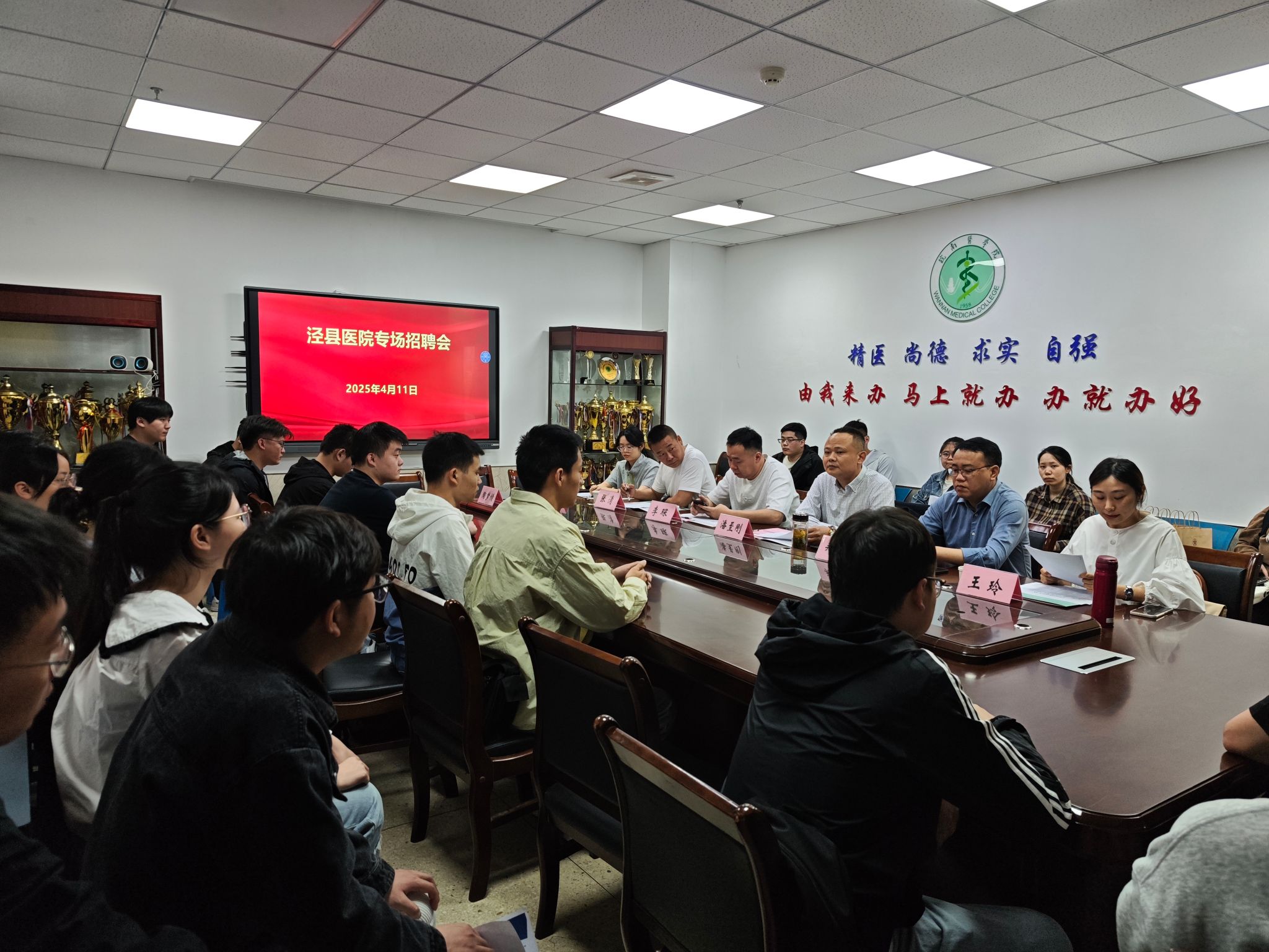 为拓宽就业渠道,切实做好2025届毕业生就业工作,williamhill中国官方网站邀请泾县医院来校举办专场招聘会,公司党委书记方基勇、副经理陈祥攀、党委副书记陶香香、毕业班辅导员和公司秘书参会。