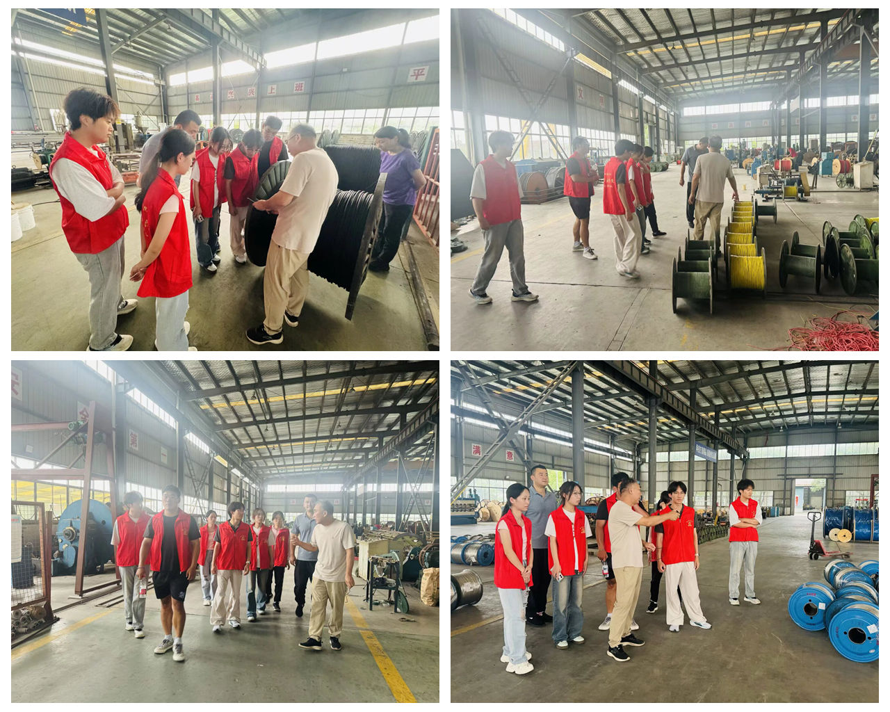 电缆织经纬——创新动能实地解码。为深入了解地方产业发展现状,实践团前往安徽特种电缆有限公司进行参观学习。在公司技术人员的带领下,成员们走进生产车间,近距离观摩电缆生产加工流程。技术人员详细介绍了电缆原材料特性、核心生产工艺及其产品在电力传输、通信网络、新能源汽车等领域的广泛应用。
