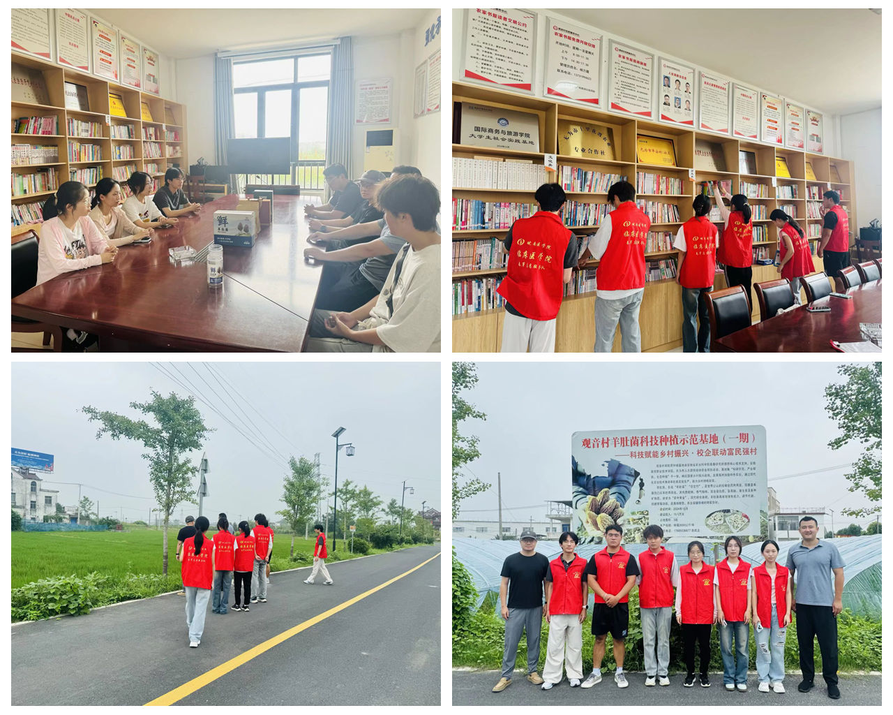 菌棚探新绿——乡村振兴一线调研。实践团首站抵达十里镇观音村,与驻村第一书记进行座谈,深入了解该村在党建引领下推进乡村振兴的具体举措与成效。随后,团队实地考察了村内羊肚菌种植基地,听取技术人员关于种植技术、市场销售及助农增收情况的介绍。活动期间,成员们还协助村委会整理了图书室,为改善乡村文化环境贡献力量。