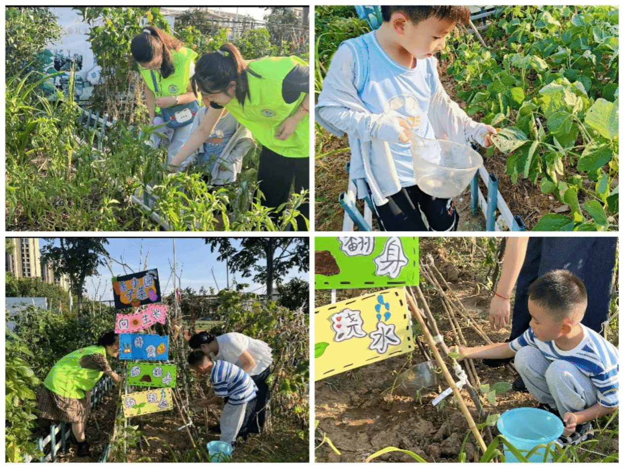 在“亲子小菜园”,志愿者带领少先队员们将共同制作的手工立牌挂置在实践田里,并指导少先队员为农作物浇水灌溉。“为了让植物更好的吸收水分,浇水要对准植物的根部......”,志愿者们运用学来的知识细致地讲解,不仅加强了少先队员的劳动教育,增强了其节粮爱粮的意识,更激发了志愿者本身对乡村振兴的实干担当。