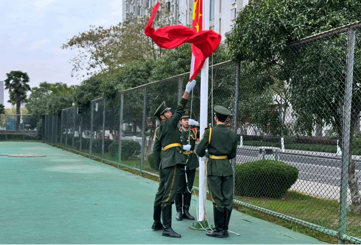上午7点10分,升旗仪式正式开始,国旗护卫队迎着朝阳,迈着铿锵有力的步伐护卫五星红旗入场。伴随着雄壮嘹亮的《义勇军进行曲》,全场师生齐唱国歌,共同注视着鲜艳的五星红旗冉冉升起,感受着震撼人心的爱国之情,凝聚起团结奋进的磅礴力量。