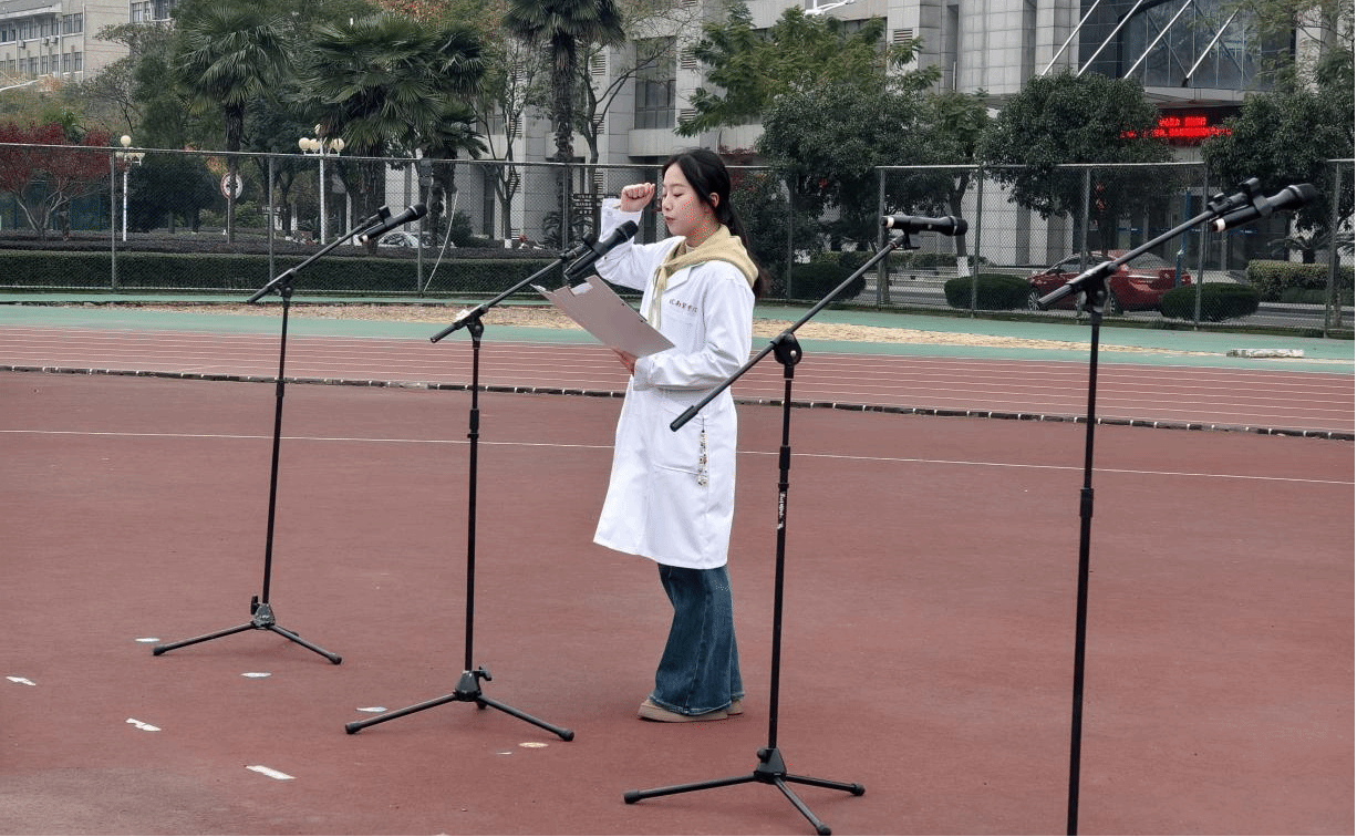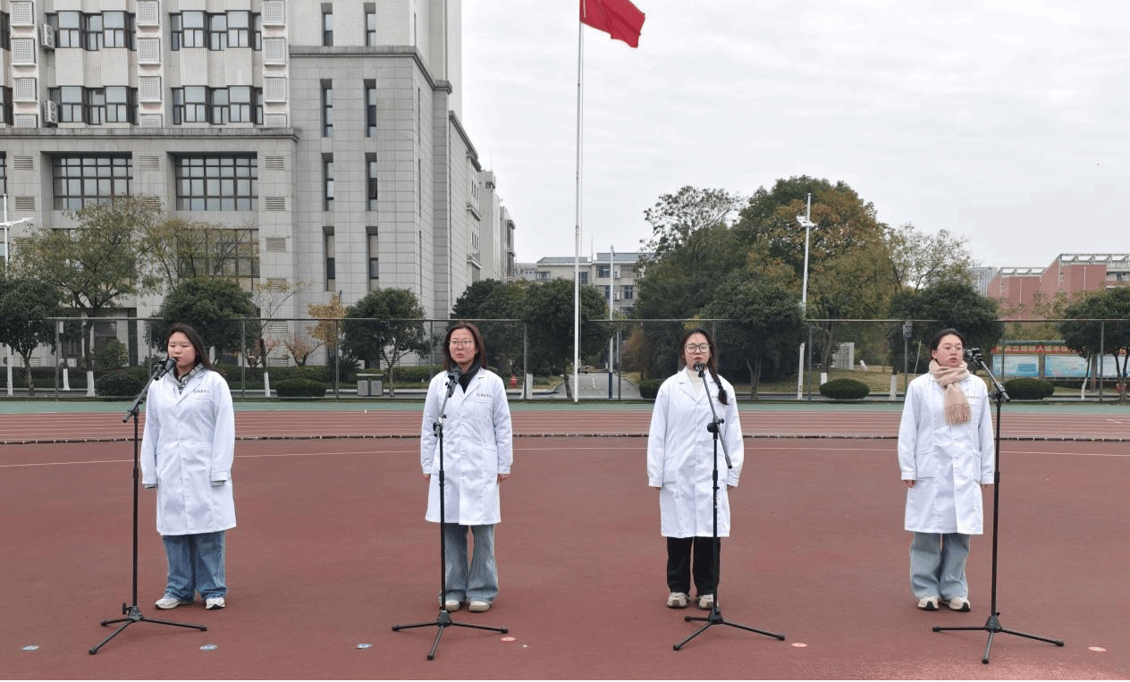 宣讲结束后,全体师生高举右拳,庄严地重温医员工誓言。最后,在校歌《为人类托起明天的朝阳》的激昂旋律中,本次活动圆满落幕。