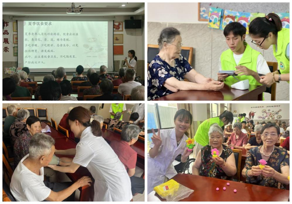 此外,志愿者们走进当地养老院,发挥专业知识,为老人们带来了一场生动的“夏季健康养生”知识讲座。结合老年人常见健康问题,志愿者们用通俗易懂的语言,讲解了防暑降温、科学饮食、慢性病防治等实用知识。随后,志愿者们为老人们进行了血压、血糖测量等基础健康检查,并建立简易健康档案,针对异常指标提供个性化建议。