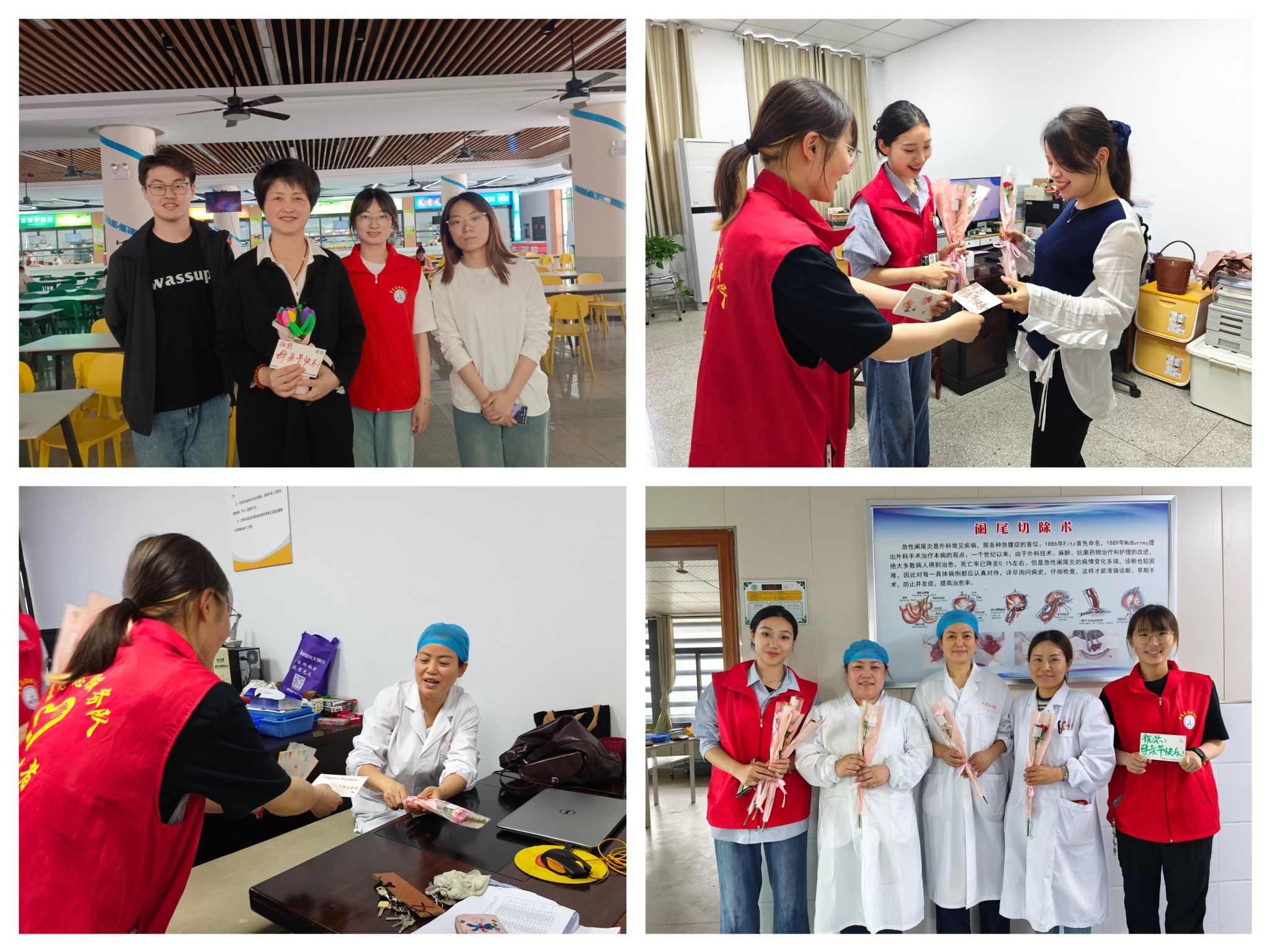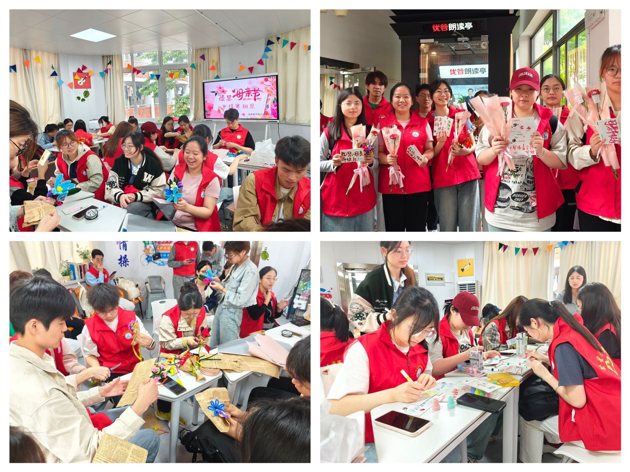 5月11日至12日,williamhill中国官方网站繁星志愿服务队的志愿者们在“一站式”员工社区包扎花束、制作精美贺卡,开展“花香祝福,献爱母亲”主题活动。志愿者们来到滨江校区办公楼、宿舍楼、食堂等处,向节日里仍坚守岗位、默默付出的“母亲们”传递最真挚的感谢,送上最温暖的祝福。
