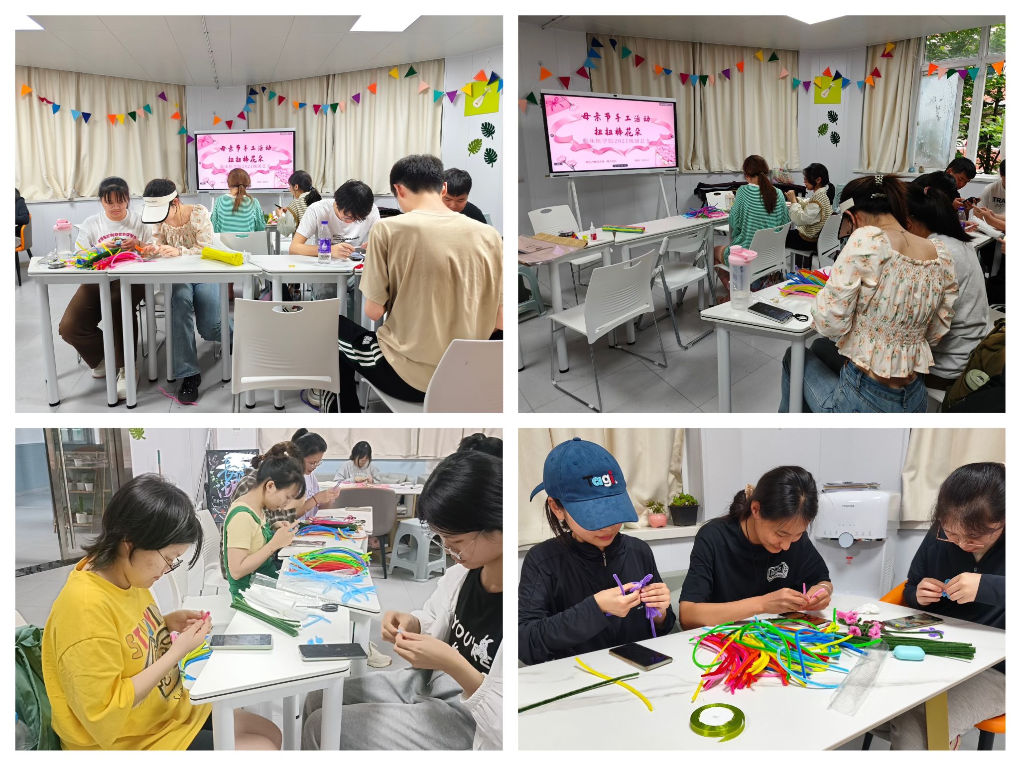5月8日至11日,同学们在“一站式”学社社区开展创意手工花制作活动。大家怀揣着感恩之心,将对母亲的思念融入到手工创作中,一扭一捏,一卷一折,花朵的雏形初现眼前。一支支创意个性的手工花在同学们的手中盛开了,活动现场仿佛一场争奇斗艳、香气四溢的鲜花盛会,充满了花的温馨与浪漫。此次手作活动不仅将在母亲节当日为“母亲们”送去手工花的祝福与温暖,也在员工社区中搭建起交流的平台,提高了“社区”同学的幸福感和获得感。