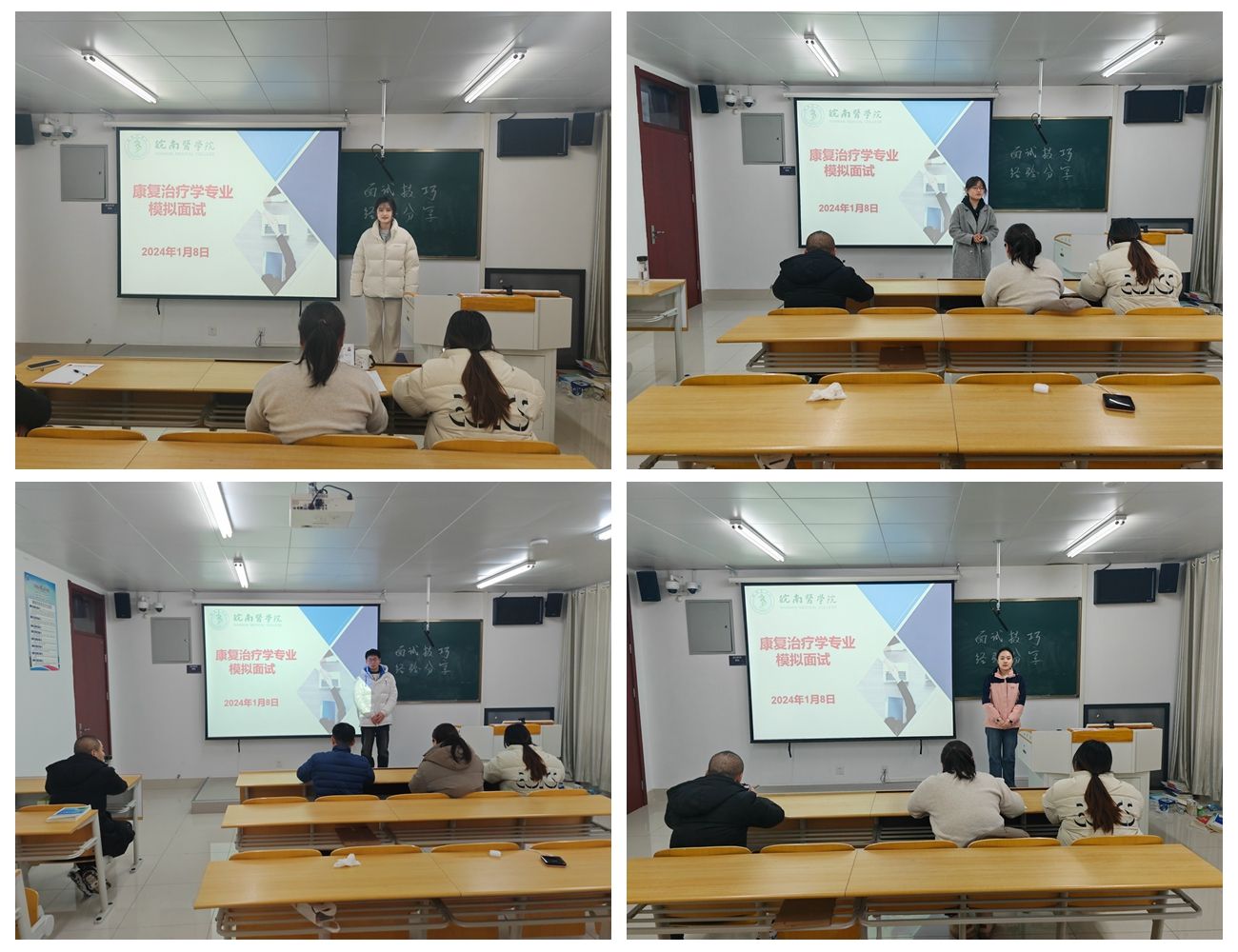 面试结束后,“考官”对“考生们”提出针对性建议,指出一要注重礼仪,着装得体,保持良好的形象;二要主动出击,自信展示,充分展现个人的思考能力和沟通能力等;三要认真破题,深入思考,回答问题注重逻辑性;四要及时反思总结,以本次模拟面试为契机,吸取他人经验,反思自身不足,及时补缺补差,为今后的面试实战打好基础。