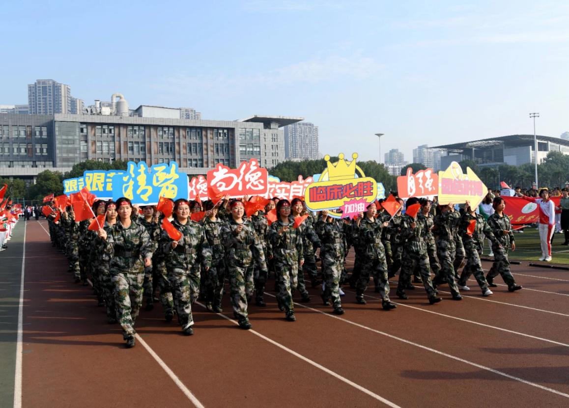 开幕式上,公司方阵队的汉服队队员们身着马面群,挥着手中的折扇,让文化走出历史的画卷;迷彩队队员们穿着迷彩服,挥舞着红旗,让人生有了别样的精彩,一声声“临床临床,拼搏自强,决胜赛场,为梦飞翔”的口号,展现临床学子永不言弃,勇敢追梦的精神品质。