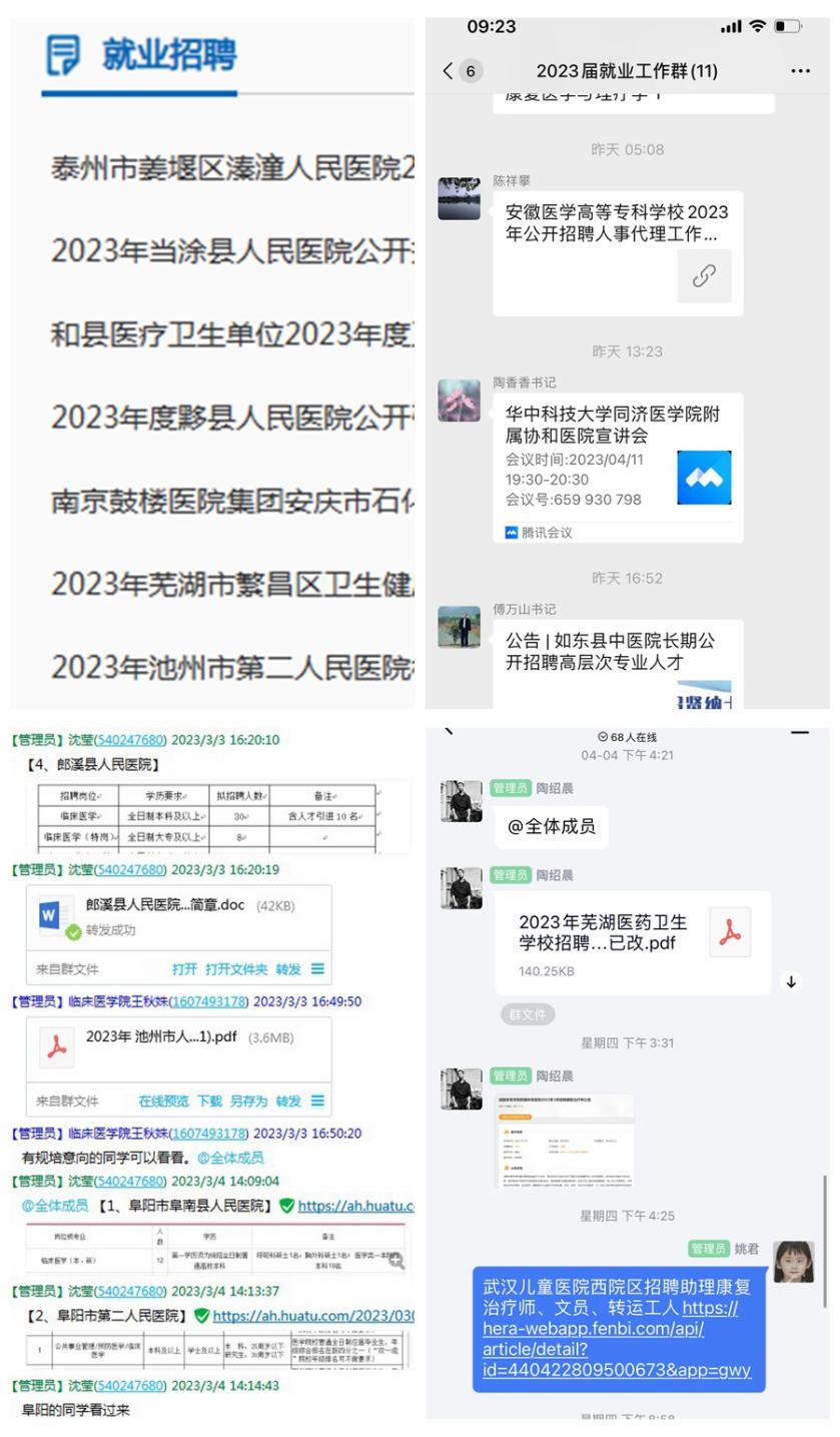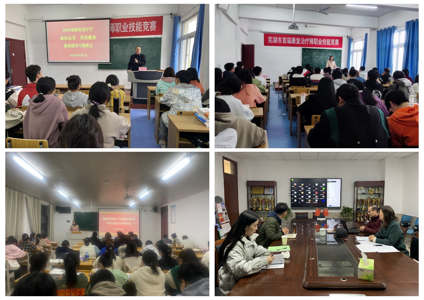3月份以来,公司及毕业班年级分临床医学专业和康复治疗学专业召开就业、征兵、考研宣讲会和就业动员会9场,分析近几年临床医学和康复治疗学专业就业趋势,解读老员工征兵入伍政策,邀请专家开展考研复试调剂、复试技巧讲座,鼓励同学们主动了解就业信息、就业市场需求及动向,树立“先就业再择业”的就业观念,积极参与校园招聘会及其他就业招聘,鼓励同学们积极响应国家号召参军入伍、建功立业。