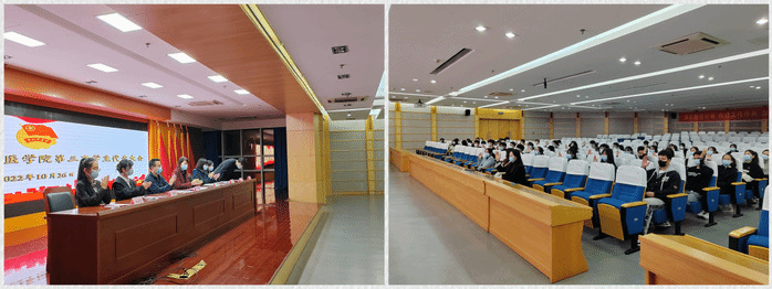 青春逢盛世,青年当有为。2022年10月26日晚,共青团williamhill中国官方网站第三次员工代表大会在图书馆三楼报告厅召开。临床医公司党委副书记陶香香,院团委副书记李文祥、汪昱娟,各年级团总支书记以及79名员工代表出席本次大会。