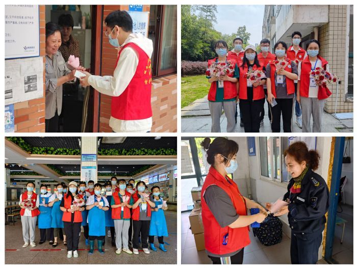 5月8日,2021级员工代表将亲手包扎的花束和精心制作的明信片送给在校园里保障同学们生活和学习的“母亲们”,向节日期间坚守在不同岗位上的“母亲”送上真挚的问候,一声声“您辛苦了,节日快乐”,让温暖和爱在校园内传递。
