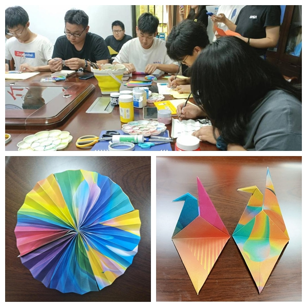 端午节期间,公司团委开展DIY活动系列活动,组织同学们手工折纸。大家发挥想象力,制作出纸鸢、折扇、龙舟等图样。此外,2020级还开展了DIY书签、DIY口罩中药香囊活动,同学们现场制作特色香囊、书签,书写寄语,送给过往同学,表达祝福之情。